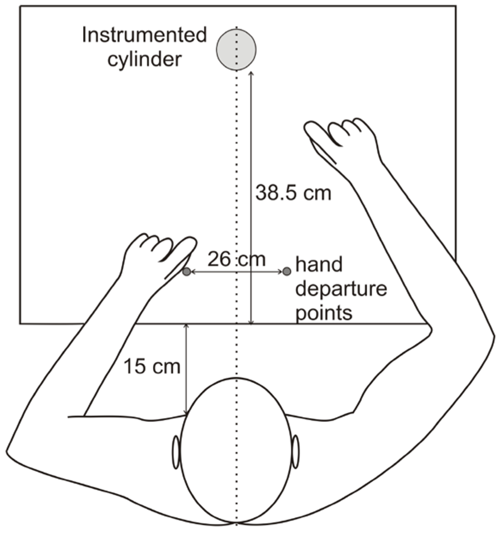 En 2010, Victor Frak et ses collègues mirent au point une expérience visant à confirmer ce lien. Des participants s’installaient devant une table sur laquelle ils posaient leurs deux mains, ils portaient un casque qui diffusait une liste de mots, l’expérience se décomposait en deux tâches à effectuer en parallèle :